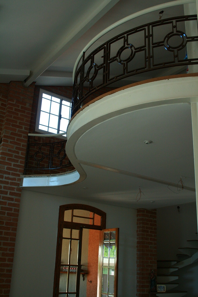 Mezzanino residencial com piso em assoalho de madeira.