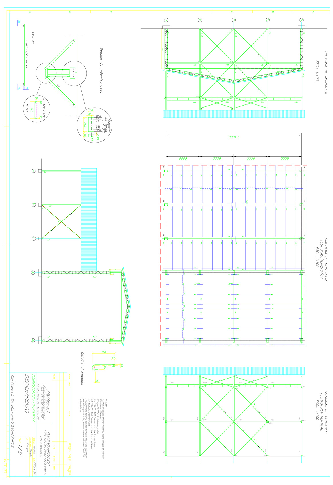 Galpão para uso diverso direcionado às indústrias, usinas de álcool e açúcar e indústrias de transformação - com ou sem ponte rolante, em shed, duas águas, com lanternim, fechamento lateral e em arco.